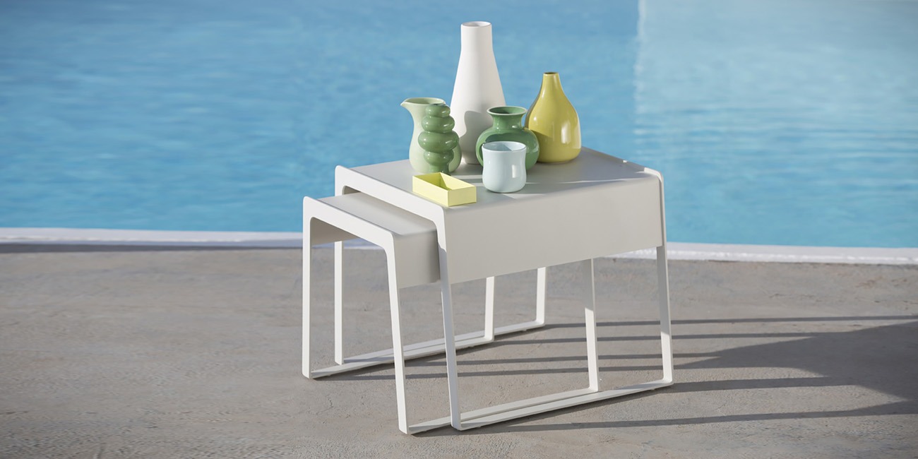 Τα πλευρικά τραπέζια Chill-out είναι κατασκευασμένα από λευκό αλουμίνιο και σχεδιάζονται από το σχεδιαστικό δίδυμο Strand + Hvass. Τα πλευρικά τραπέζια Chill-out μπορούν να χρησιμοποιηθούν με πολλούς διαφορετικούς τρόπους και μπορούν να συνδυαστούν με όλο το φάσμα των επίπλων από τις συλλογές μας.