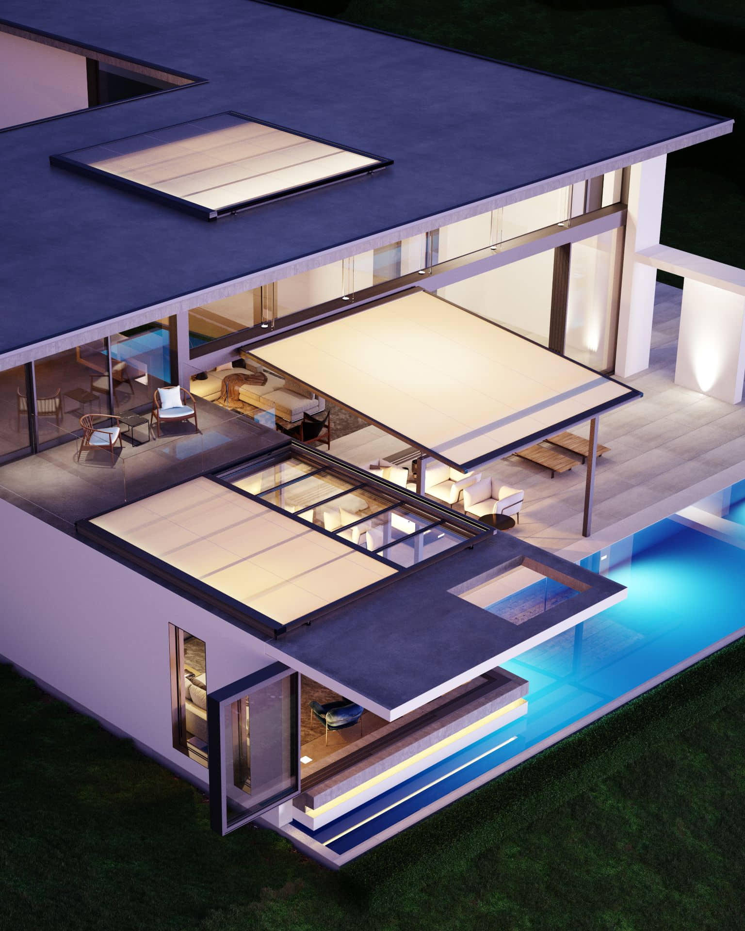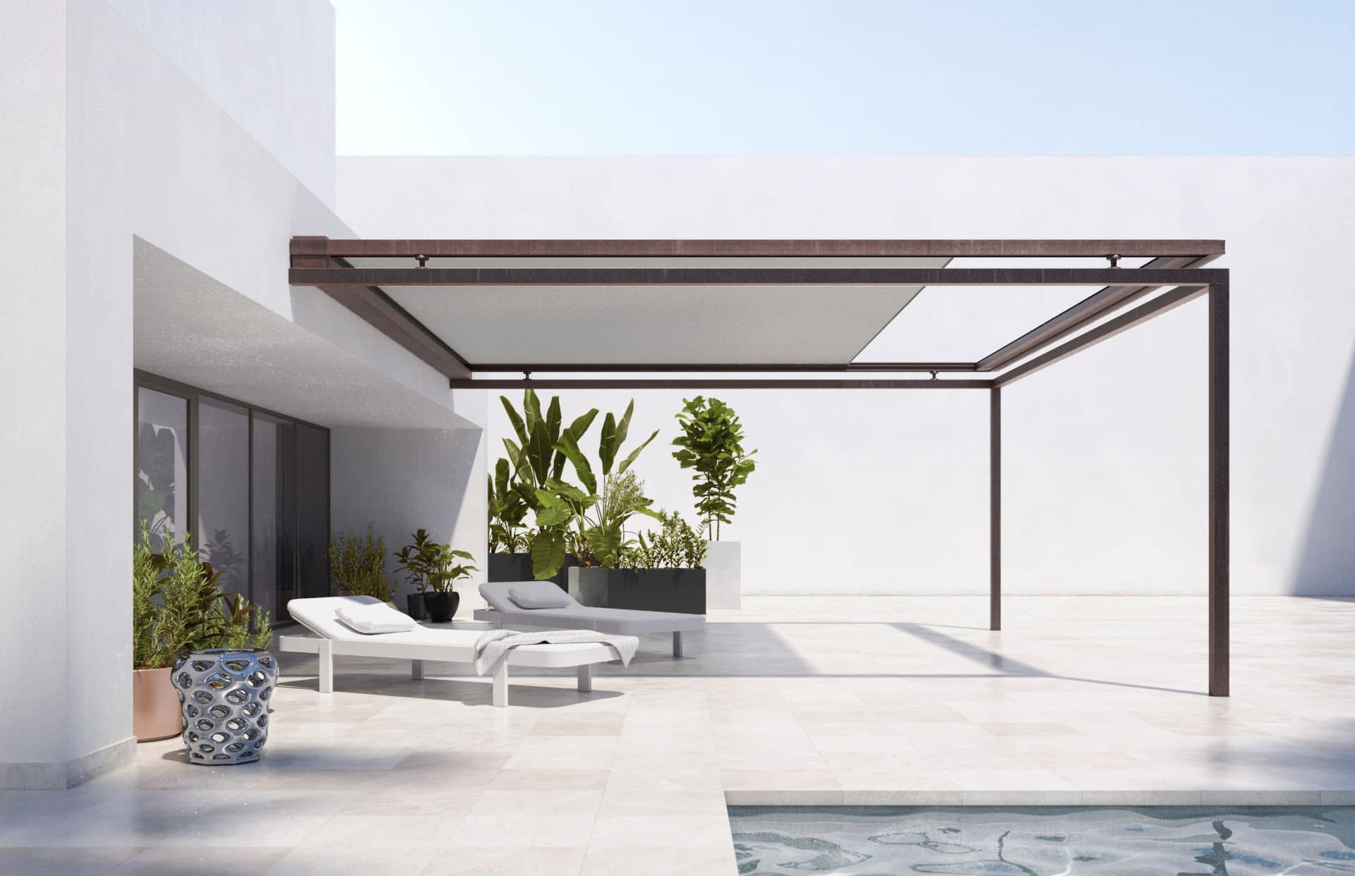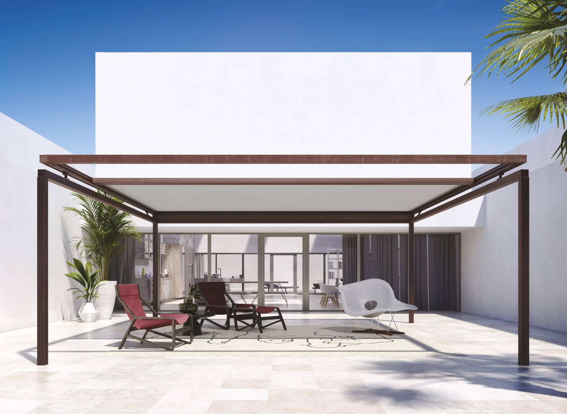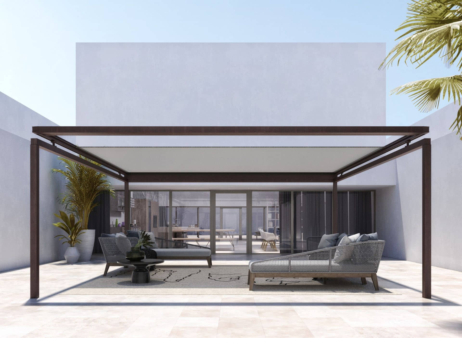 Νέα πρόταση για την κάλυψη ενός αιθρίου. Το σύστημα Frame μπορεί να τοποθετηθεί σε υπάρχουσα κατασκευή ή αυτοστηριζόμενο. Το σύστημα τάνυσης με αμορτισέρ στους οδηγούς και ο ιμάντας υψηλής αντοχής, μαζί με το προαιρετικό πλευρικό φερμουάρ (ZIP) και την πλήρως προσβάσιμη κασέτα, κάνουν το σύστημα FRAME το προϊόν που έλειπε.
