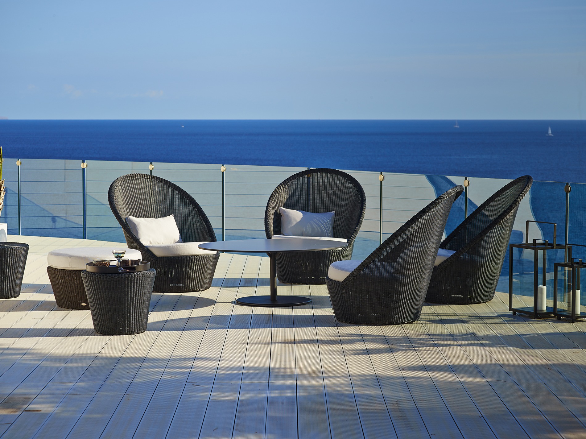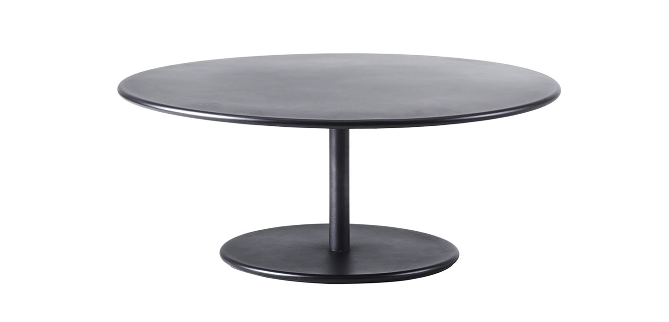 Το GO lounge είναι ένα απλό και κομψό τραπέζι – μια γεωμετρική παιχνιδιάρικη κατασκευή με τα 2 κυκλικά στοιχεία – πάνω και κάτω.Η κομψή,επιφάνεια του τραπεζιού και το μειωμένο μινιμαλιστικό πόδι προσδίδουν στο τραπέζι ένα μοναδικό σχέδιο που ταιριάζει σχεδόν σε κάθε χώρο. Το τραπέζι του GO είναι κατασκευασμένο από αλουμινίο με αντιολισθητική αλουμινένια επιφάνεια, με αντίθετη βαρύτητα, για μέγιστη σταθερότητα και αντοχή, επιτρέποντας έτσι τη χρήση του σε όλες τις καιρικές συνθήκες. Το τραπέζι του GO έχει σχεδιαστεί από την Ομάδα Σχεδίασης Cane-line.